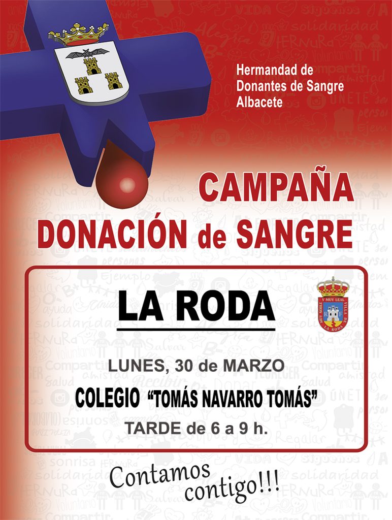 📍 La Roda📅 Lunes, 30 de marzo 🕕 De 18:00 a 21:00 h 📌 Pabellón del colegio “Tomás Navarro Tomás” ...
