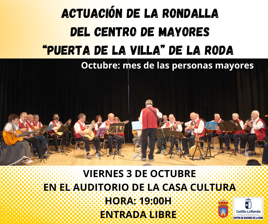 El próximo viernes 3 de octubre disfruta de la actuación de la Rondalla del Centro de Mayores “Puerta de la Villa”.