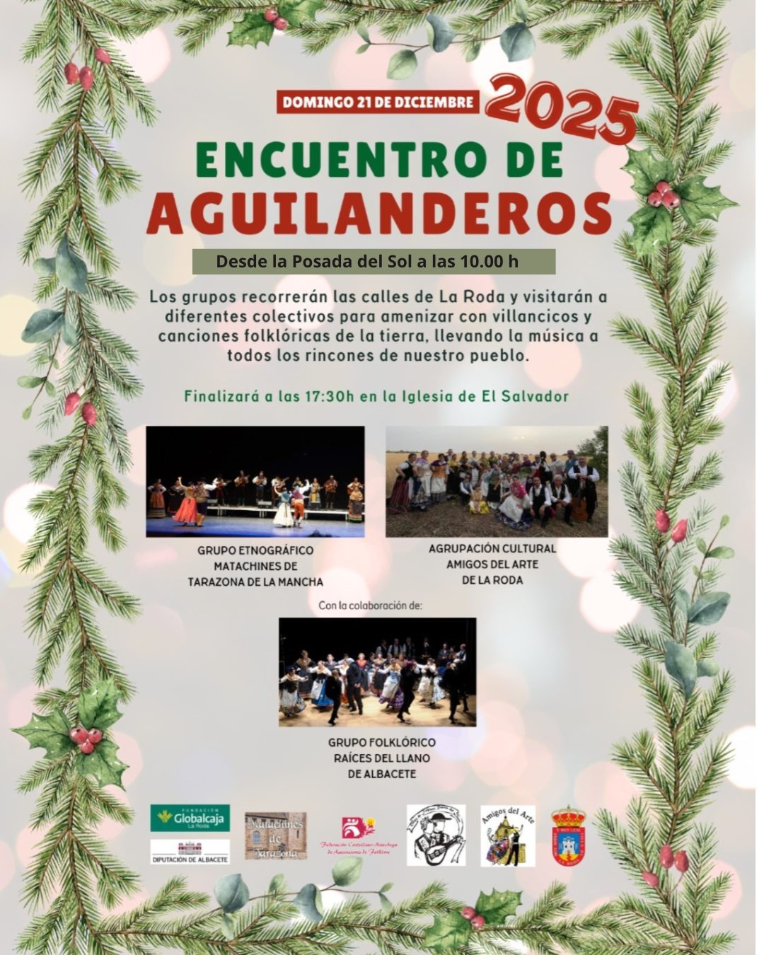 Desde las 10.00 horas, la agrupación cultural Amigos del Arte, junto con grupos de folclore de Tarazona de la Mancha y Albacete recorrerán nuestro pueblo. Por la tarde finalizarán en la Iglesia, visitando el Belén y participarán a las 18.30 h. en la Plaza Mayor de la visita de Papá Noel