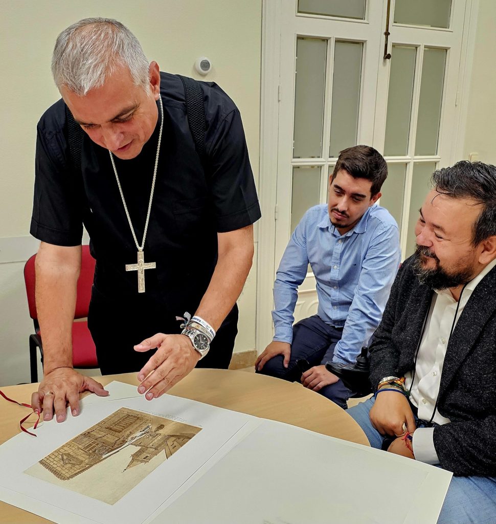 Durante la visita a la sede del Obispado en Albacete, Juan Ramón Amores ha obsequiado a don Ángel Román con uno de los grabados de la Iglesia, una edición limitada que el obispo ha agradecido ya que, ha asegurado, para él “La Roda siempre será un lugar muy especial” al ser el primer lugar donde tuvo parada antes de ser consagrado en su nuevo cargo.