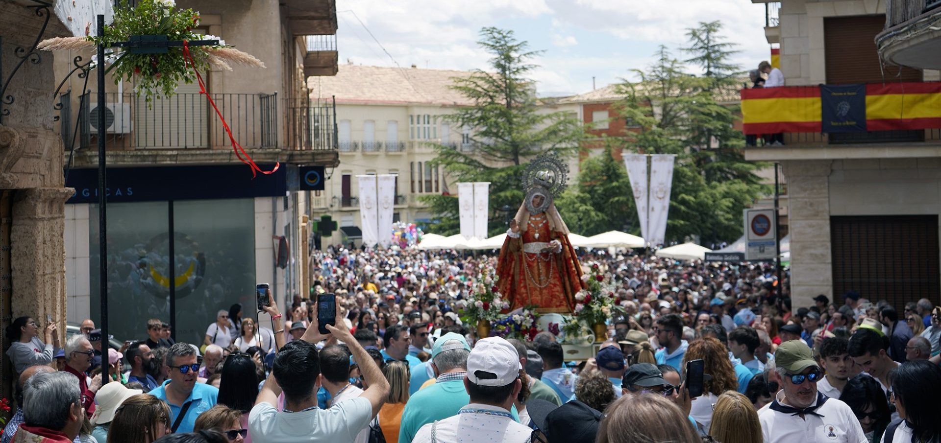 La Plaza Mayor abarrotada para recibir a la patrona de La Roda en Romería