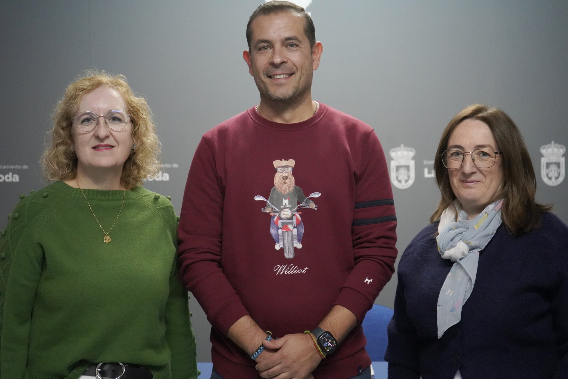 El concejal de Cultura, Luis Fernández, junto a Petri Fernández Olmos y Pilar Sevilla, de la Asociación Amigos del Arte, ...