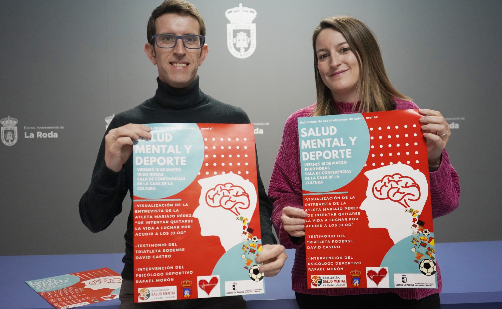 El concejal de Deportes en el Ayuntamiento de La Roda, Javier Escribano, y la trabajadora social de AMAR (Asociación Mentes ...
