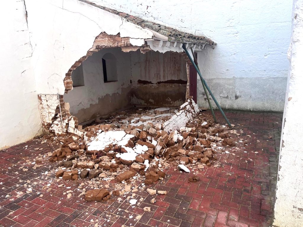 Otro de los espacios afectados es la Plaza de Toros, donde se ha producido el derrumbe parcial de la taquilla de venta, presumiblemente a causa de las precipitaciones acumuladas.