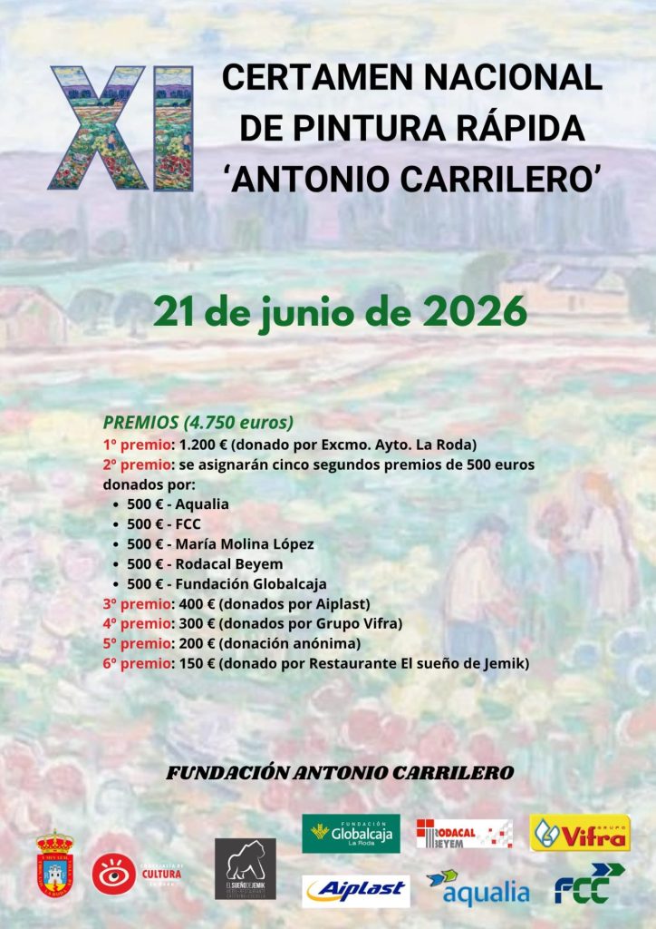 Como es habitual, está abierto a la participación de cualquier artista mayor de edad residente en España, y la jornada se desarrollará entre las 9:00 y las 18:00 horas, tiempo durante el cual los participantes deberán realizar sus obras al aire libre, inspiradas en La Roda y su entorno urbano.