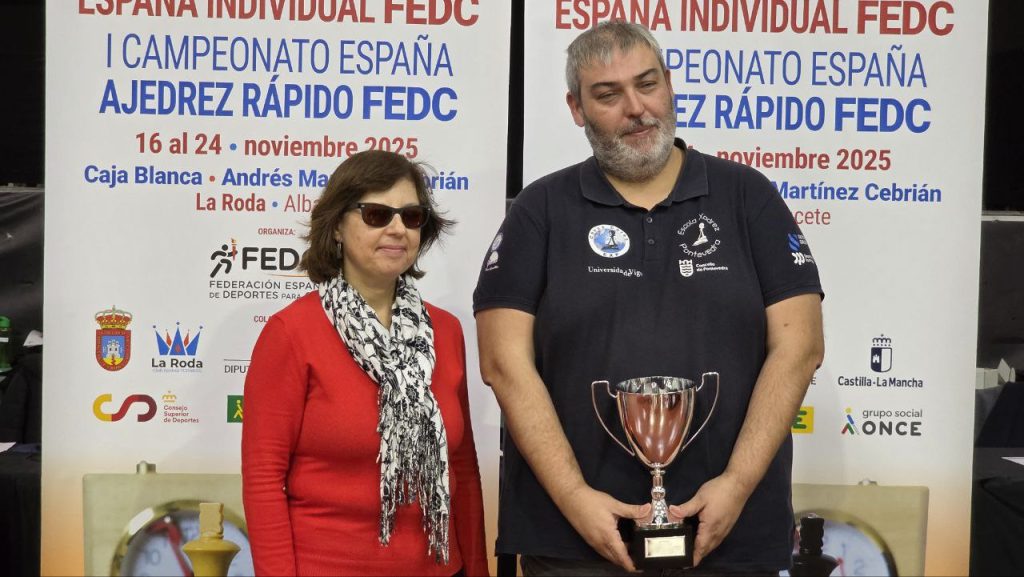 La Roda ha puesto este lunes el broche final a la 34ª edición del Campeonato de España Absoluto de Ajedrez para personas ciegas o con discapacidad visual grave, una cita nacional organizada por la Federación Española de Deportes para Ciegos (FEDC) en colaboración con el Club Ajedrez Torneos Internacionales de La Roda, la Diputación de Albacete, el Ayuntamiento de La Roda y la Organización Nacional de Ciegos de España (ONCE). Un torneo que se ha desarrollado desde el pasado 16 de noviembre y que ha reunido a 64 jugadores procedentes de toda España, incorporando por primera vez el Campeonato de Ajedrez Rápido.
