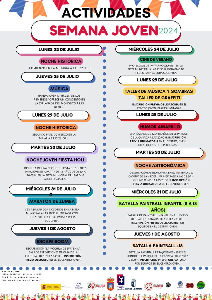 Esta mañana el concejal de Festejos, Luis Fernández, anunció el inicio del periodo de inscripción que se mantendrá abierto hasta las 12:00 del 1 de agosto. Seguidamente, se procederá al sorteo para designar los grupos que participarán, un total de seis equipos compuestos cada uno por seis integrantes más dos suplentes. Las inscripciones pueden presentarse en ventanilla del Registro del Ayuntamiento de La Roda o enviar un email al concejal de Festejos (lfernandez@laroda.es) indicando principalmente el nombre del grupo y un teléfono de contacto.