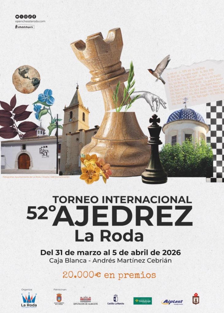 La Roda volverá a convertirse en epicentro del ajedrez internacional con la celebración de la 52ª edición del Torneo Internacional de Ajedrez, una cita ya consolidada en el calendario deportivo que se desarrollará del 31 de marzo al 5 de abril.