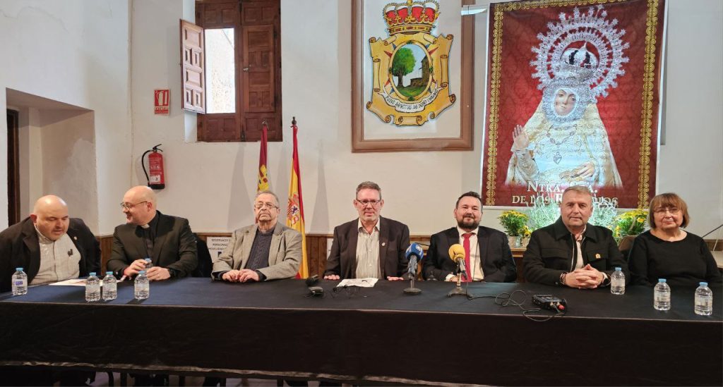 Este viernes por la noche tenía lugar en el Teatro Cervantes, situado en el interior del Claustro de Fuensanta, el tradicional acto de petición de la Virgen de los Remedios por parte del pueblo de La Roda al pueblo vecino, ante vecinos de ambas localidades, y presidido por los alcaldes de ambas localidades, Juan Ramón Amores y José Manuel Núñez.