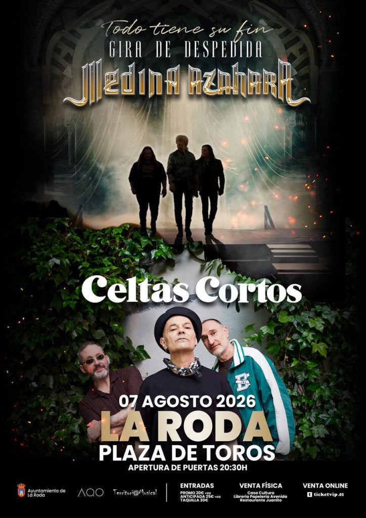 La Plaza de Toros acogerá el 7 de agosto un concierto “único” que reunirá sobre el escenario a Medina Azahara, en su gira de despedida, y a Celtas Cortos, una de las formaciones más emblemáticas del panorama musical español.