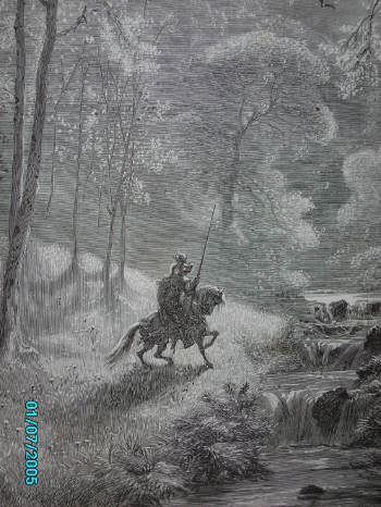 Es necesario adentrarse en estas maravillosas imágenes y prestar atención a la belleza de sus paisajes, a sus cielos y sus lunas casi mágicos, a sus claroscuros que dan vida a los personajes. Observen los gestos desmañados y la melancolía de un rostro que habla de idealismo... o esas olas de un mar que casi podemos tocar. Es el Doré más romántico y el que quizá mejor supo interpretar a Cervantes.
