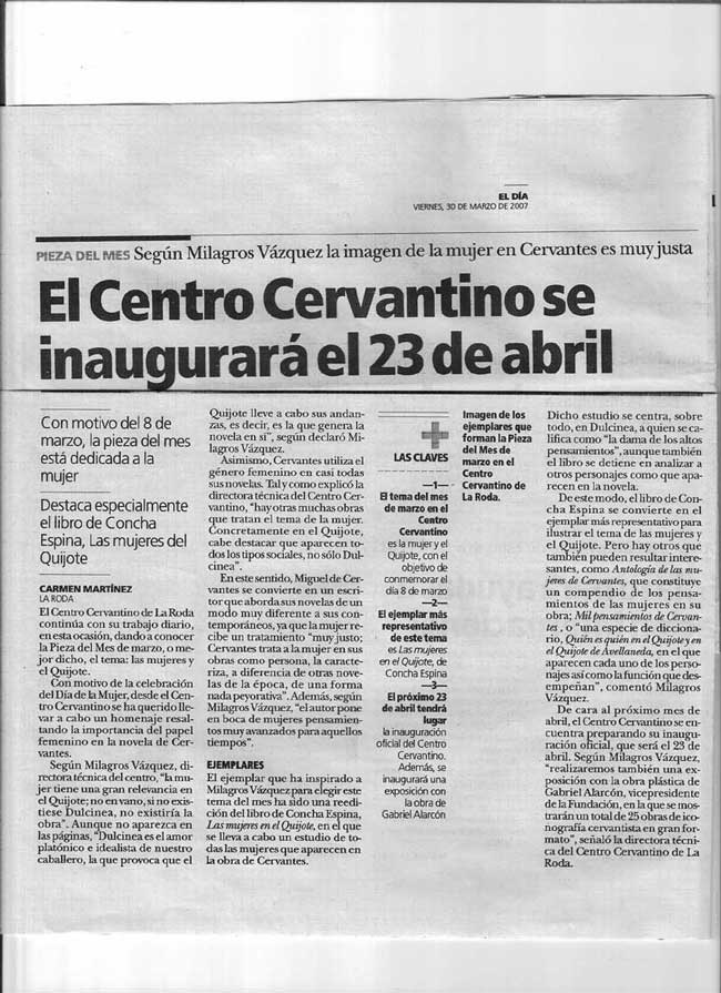 El Centro Cervantino se inaugurará el 23 de AbrilEl Día, 30 de Marzo de 2007Haga click en la imagen del margen, para ver la noticia ampliada.